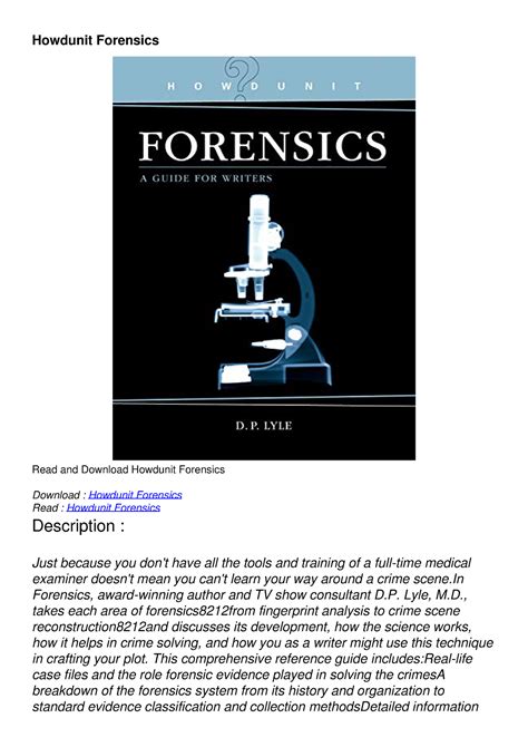 Read Online howdunit forensics howdunit forensics Epub By Click Button. howdunit forensics howdunit forensics it’s easy to recommend a new book category such as Novel, journal, comic, magazin, ect. You see it and you just know that the designer is also an author and understands the challenges involved with having a good book. You can easy klick for detailing book and you can read it online, even you can download it
